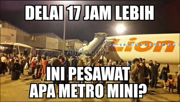 Delay yang terjadi pada pesawat lion membuat banyak amarah para penumpangnya, akhirnya para netizen ikut meramaikan dengan mengungkapkan Meme Delay Lion Air 2015. namun ada meme yang paling menarik dan menggelitik yakni '' pesawat delay aja marah, lha kalo sholat delay? tau kan siapa yang marah? '' benar-benar sangat bagus kata kata dalam meme tersebut. dan kami merasa tertarik untuk memasangnya pada path, instagram dan media sosial lainnya.